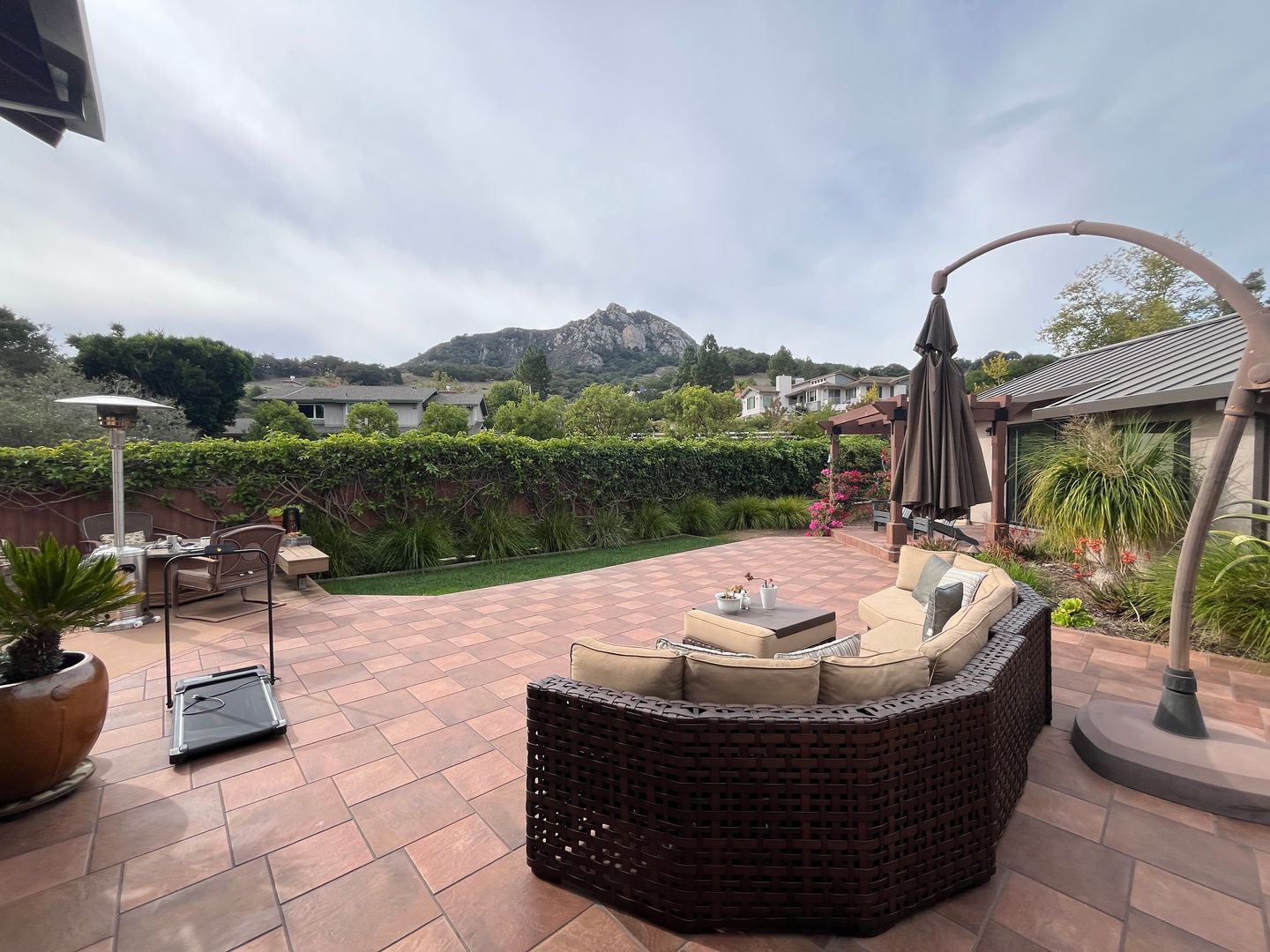 Welcome to this stunning 4-bedroom, 3-bathroom home located in the sought-after Ferrini Ranch neighborhood of San Luis Obispo. Furnished home, we are offering 6 months to a year lease, will default after 6 month and renegotiate. This single-level, fully furnished home an open floor plan that allows for an abundance of natural light. The fully-equipped chef's kitchen features stainless steel appliances, an electric stove, granite countertops, and a kitchen island with seating. The primary bedroom offers a California King bed, a walk-in closet, and a bathroom with heated floors, spacious walk in shower. Hall bath with tub/shower combo. The fourth bedroom comes with an en-suite, walk in shower, perfect for guests. The house also features a projector for movie nights, making it a perfect blend of comfort and entertainment. The home also includes a laundry room, an office space, a double car garage, and a barn door in the family room. Enjoy the beautiful patio with a pergola off primary bedroom and a hot tub, perfect for relaxation while taking in the mountain views. The home is equipped with air conditioning, solar, and beautiful white oak wood floors. The built-in breakfast nook and ample storage throughout the house add to its charm. The home is located near the Bishop’s Peak, perfect for outdoor enthusiasts.