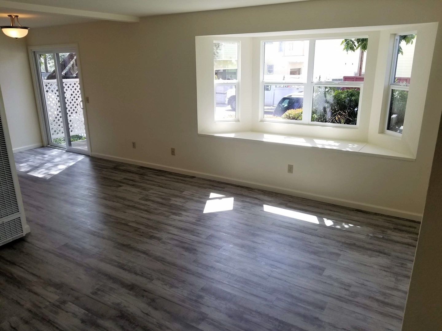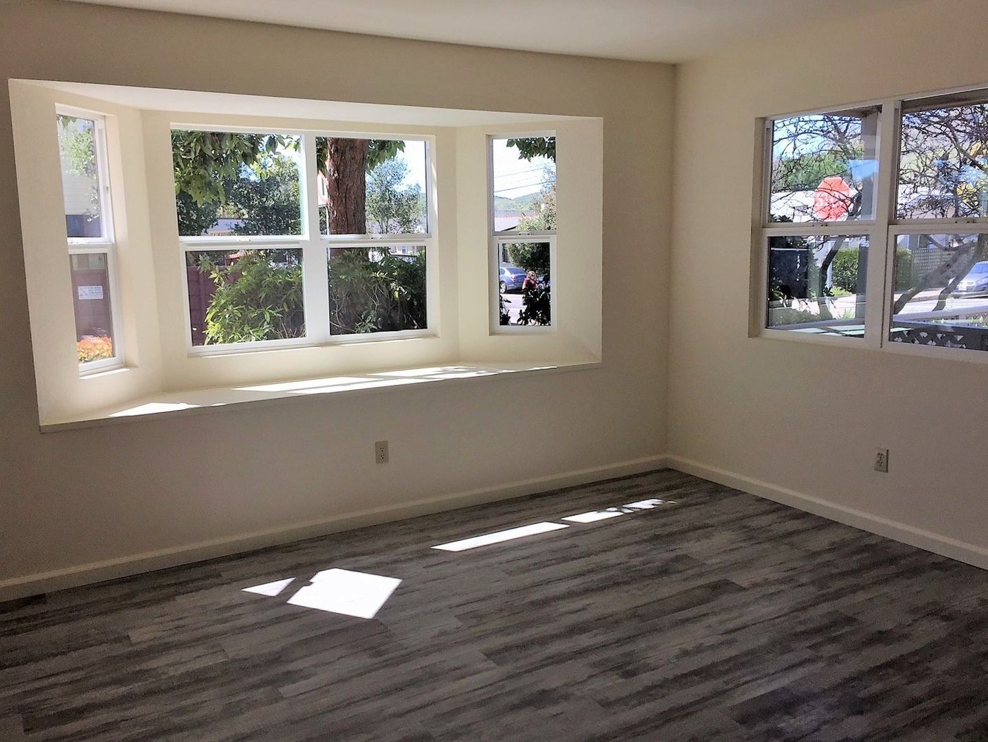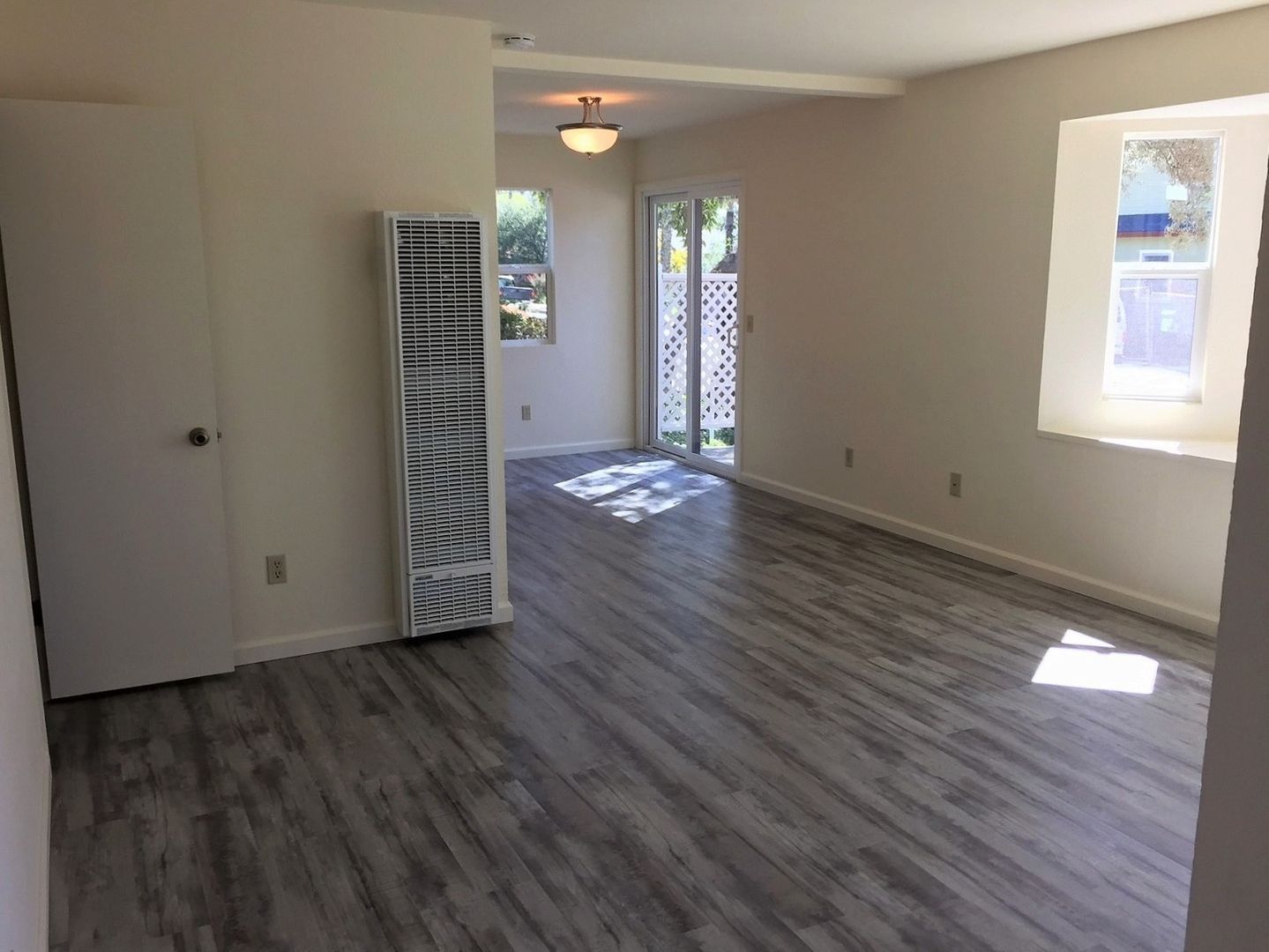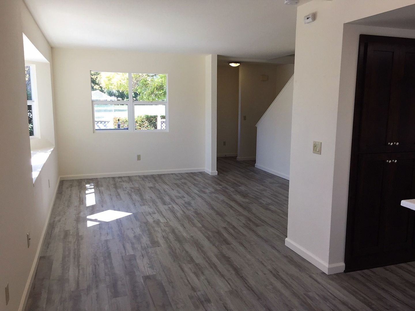 This stylish apartment is equipped with a gas oven/range and dishwasher, nice kitchen cabinets and countertops, flooring (vinyl plank and carpet), bath cabinets and countertops, fixtures and window coverings throughout. There is a coin-operated laundry room onsite for tenant use. This unit also comes with a small detached one-car garage, front patio area and a small enclosed side patio. (Photos are of similar unit)
