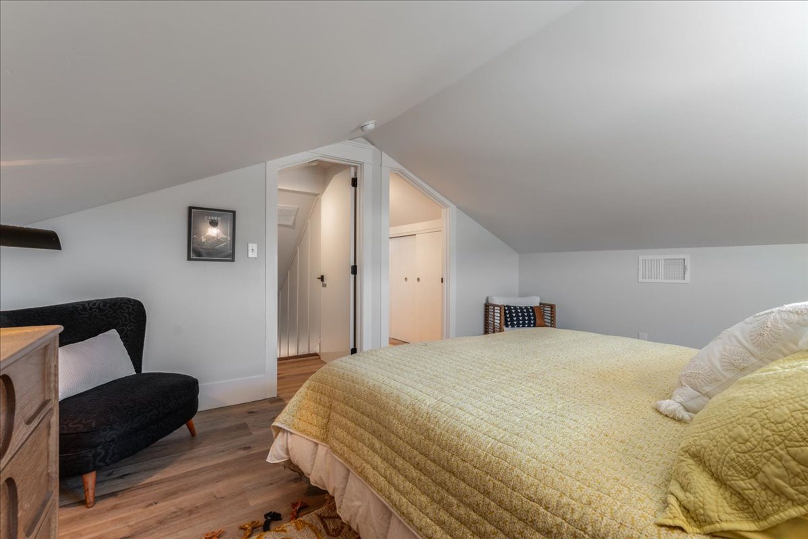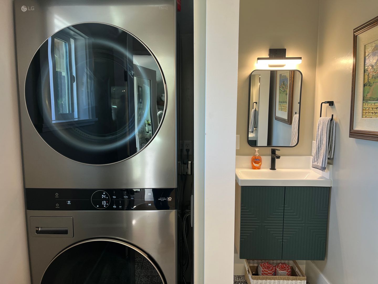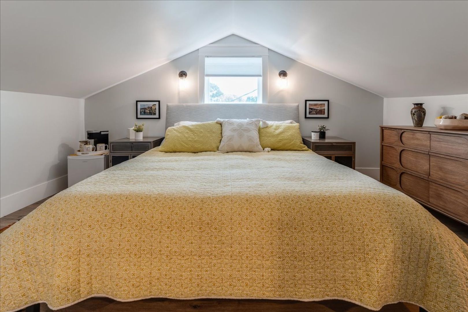 Three cozy bedrooms comfortably sleeps up to 6 guests, two bedrooms are on the main floor; first bedroom has a new King size bed, and second bedroom/office has a Queen. The Primary upstairs bedroom has a Cal King, a spacious ensuite with a walk-in tile shower and two large closets. All the furnishings throughout the home are new, and the décor is a collaboration with a local designer.
