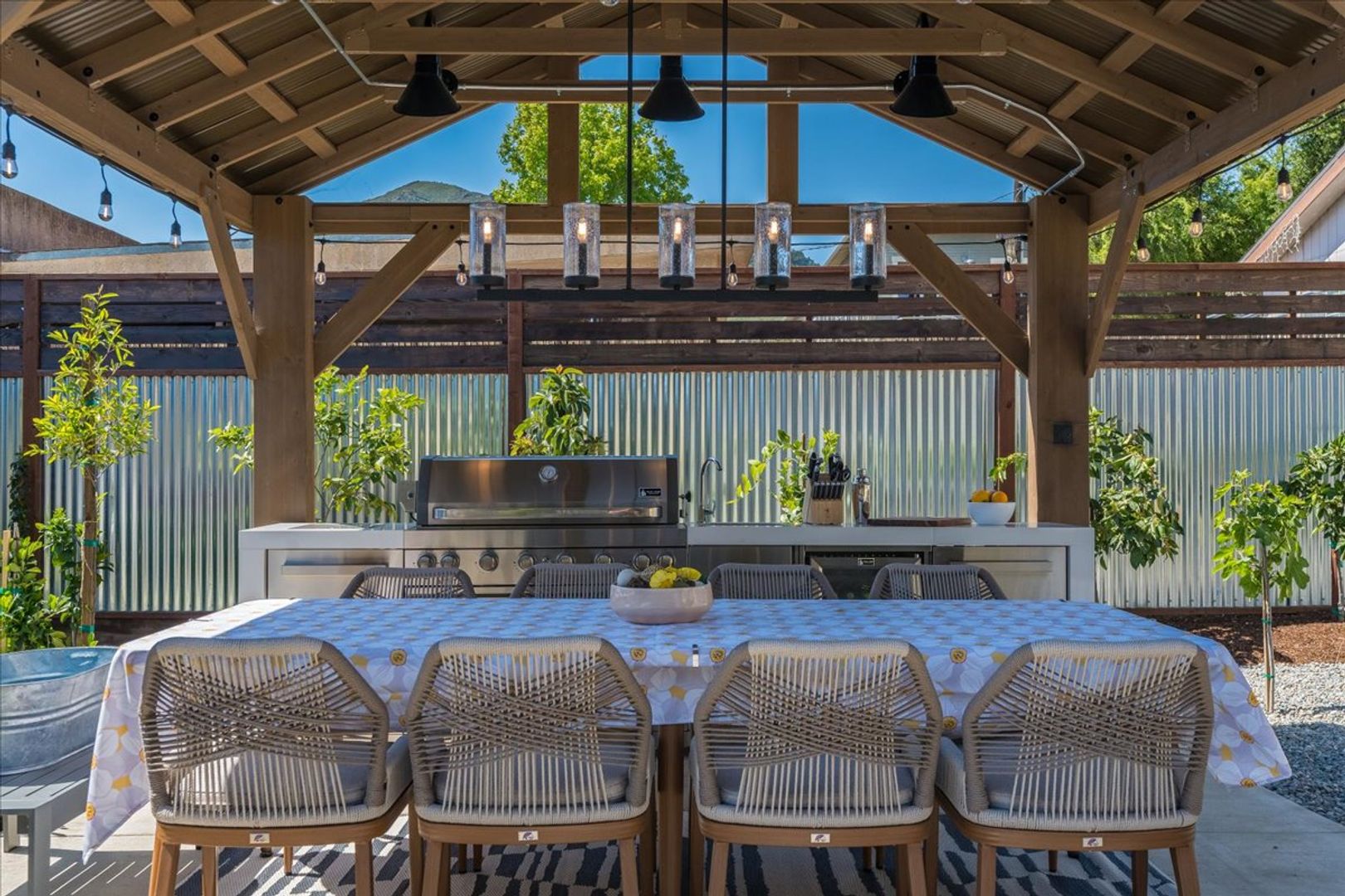 The backyard is the perfect retreat and is seamless continuation of the home and the obvious owner’s attention to detail! The new and amazing backyard outdoor space includes two cozy seating areas with a gas firepit, an amazing waterfall fountain, and a dream outdoor kitchen under a covered romantic well lite gazebo to entertain with seating for 8! The front porch is also perfect for early morning coffee or after noon cocktails as the friendly neighbors pass by. Both areas are adorned with amazing outdoor fountains that add to the home’s ambiance and enjoyment.