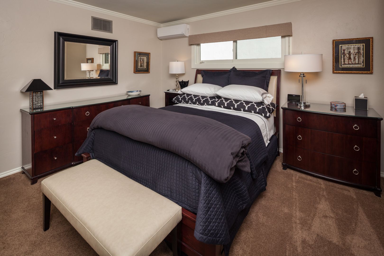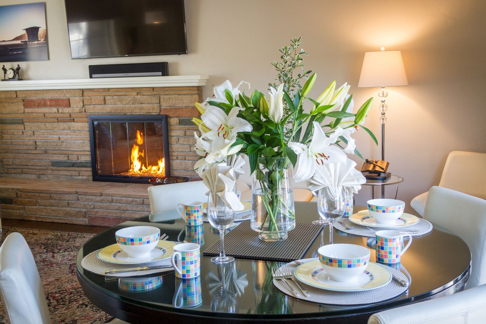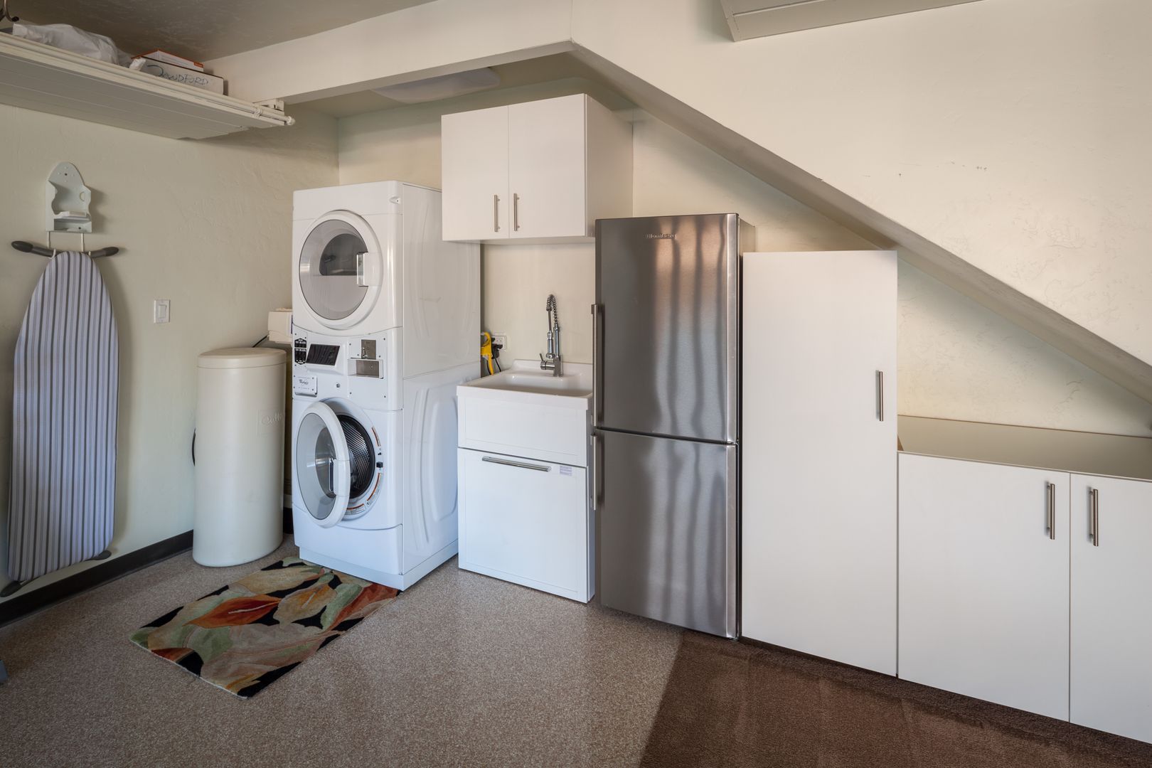 This unit is well equipped with a gas stove and oven, warming drawer, microwave, dishwasher, refrigerator, heating + air conditioning, automatic door opener, on site laundry featuring washer and dryer. If you choose to keep the furnishings, you can expect a comfortable stay with all the furniture, decor, linens and dishes.