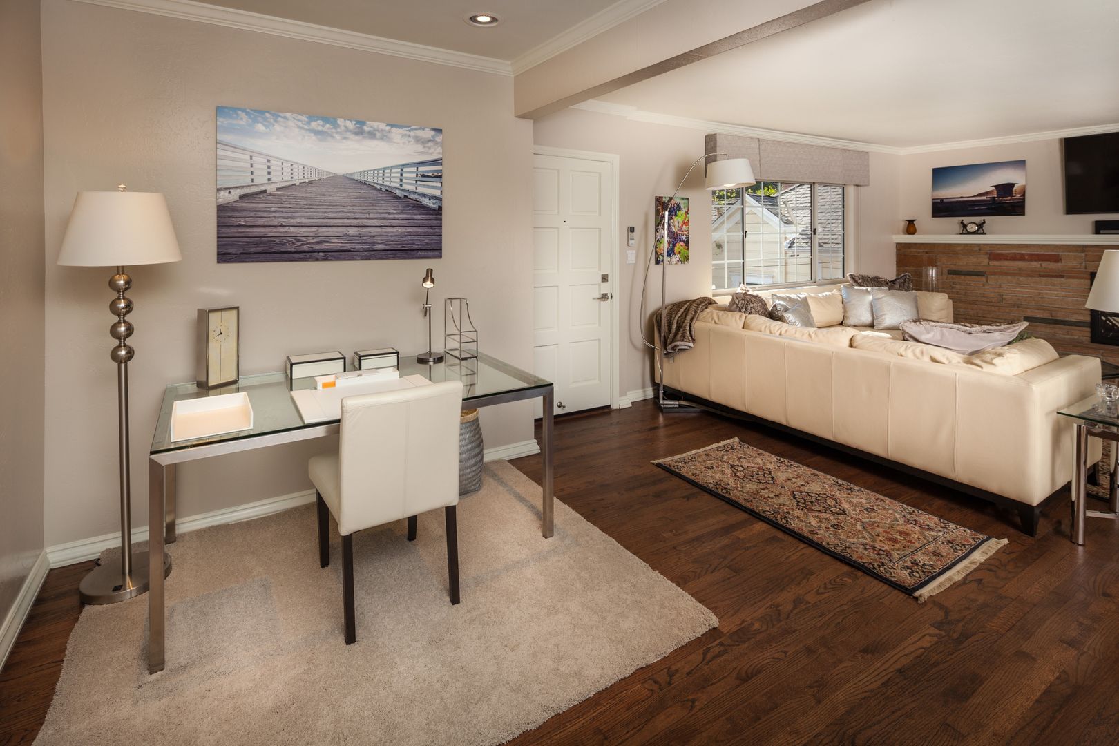 Enjoy the lovely and private swimming pool and your own private deck, excellent downtown SLO location with expansive views, close to everything yet quiet and relaxing. This luxurious updated unit features a spacious kitchen with quality stainless steel appliances, beautiful fireplace, large living room w/sweeping views. Dining area, separate work area, 2 bedrooms, newly remodeled spa like full bath w/ heated floors, hard wood floors, newer carpet and paint, lots of natural light, 1 car garage, solar. Available furnished or unfurnished.