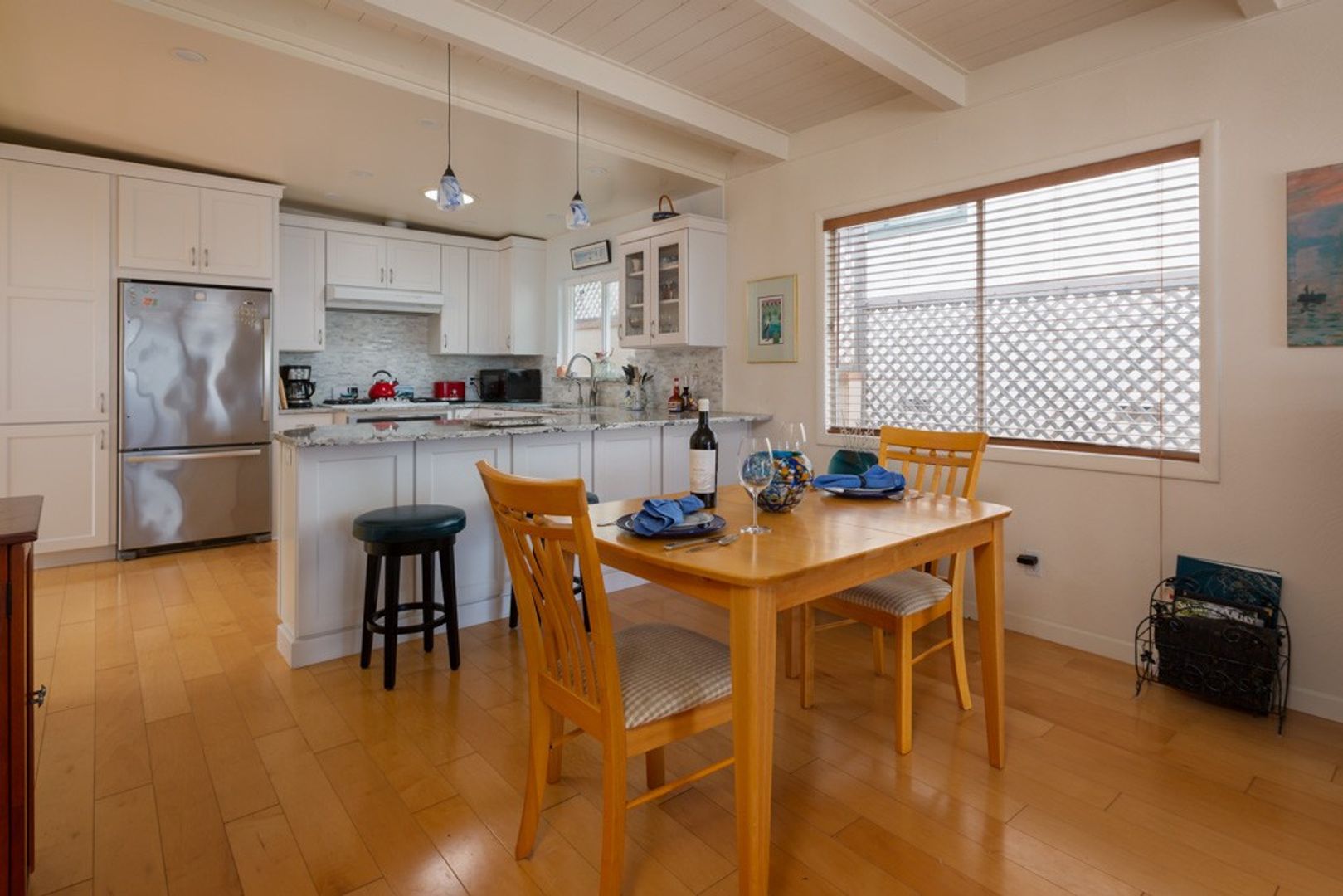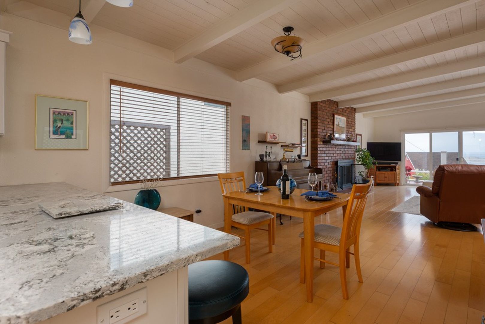 Stay close to sandy beaches at this charming, two bedroom beach house in the fabulous of Morro Bay. This home is near the bay on the hillside so the view is spectacular. The inside of this home is as welcoming and the exterior. The is the front balcony off of the living room and the back patio for a peaceful retreat. Guests can enjoy sunset beach views on the balcony, hot cocoa by the fireplace and home-cooked meals in the newly renovated kitchen that is fully equipped. Whether you are enjoying a cozy night-in or exploring the town, there is so much to enjoy here in Morro Bay!