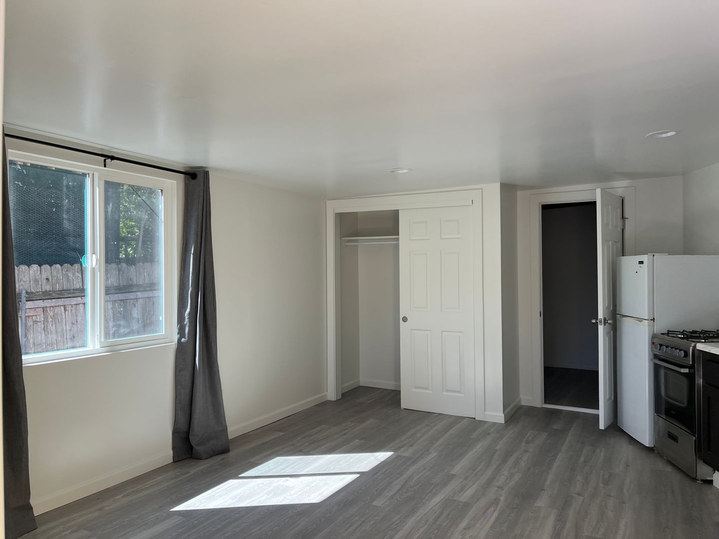 Bright detached Studio! This studio in the back with a front yard, private and close to everything in downtown SLO. Kitchen has sink, full refrigerator, and gas stove. Bathroom with a shower. There is a bonus room which can be set up as you wish, as an office, storage, tv room or a twin bed would work.