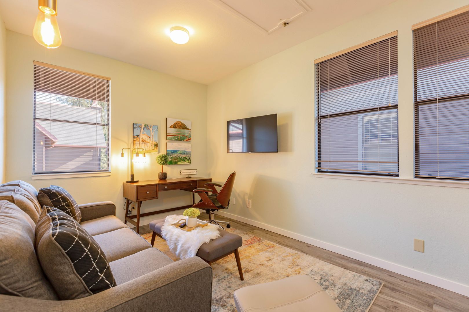 Spacious Condo in SLO's downtown neighborhood! Love this retro living room to relax or entertain off the dining room. Bring your clothes and toothbrush, this home is fully equipped to enjoy and experience SLO. Condo is in a quiet neighborhood with views of Madonna Mountain on one side and SLO's rolling hills on the other.