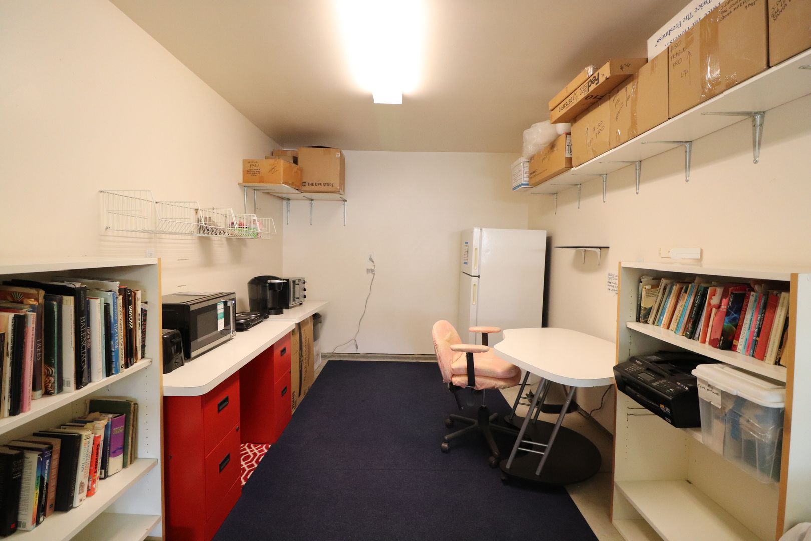 Ground floor room with adjoining sitting area for rent in a great neighborhood. There is a private entrance but the space is open to the main property. Amenities include a shared restroom and laundry area as well as a patio space outside to enjoy the weather. Small appliances and a refrigerator are for use by the tenant with dishwashing services provided.